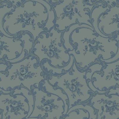 Dette meget flotte duset blå patchworkstof har et snirkel mønster.