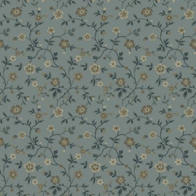 Dette meget flotte duset blå patchworkstof har små beige/brune blomster.