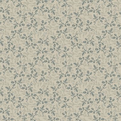 Dette meget flotte duset Beige/lys oliven patchworkstof har små duset blå blomster.