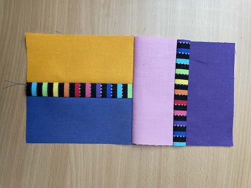 Og nu syes de sammen 2 og 2 - en vandret og en lodret syes sammen.