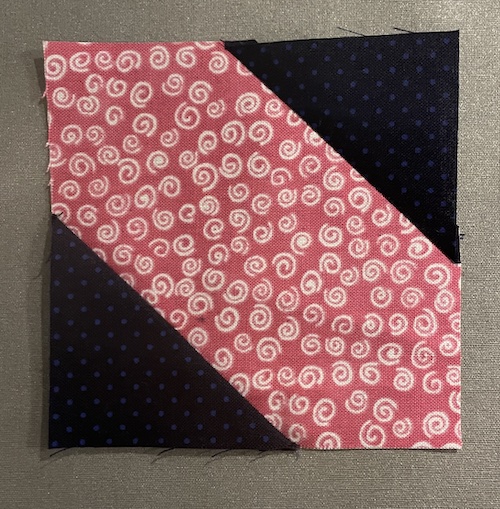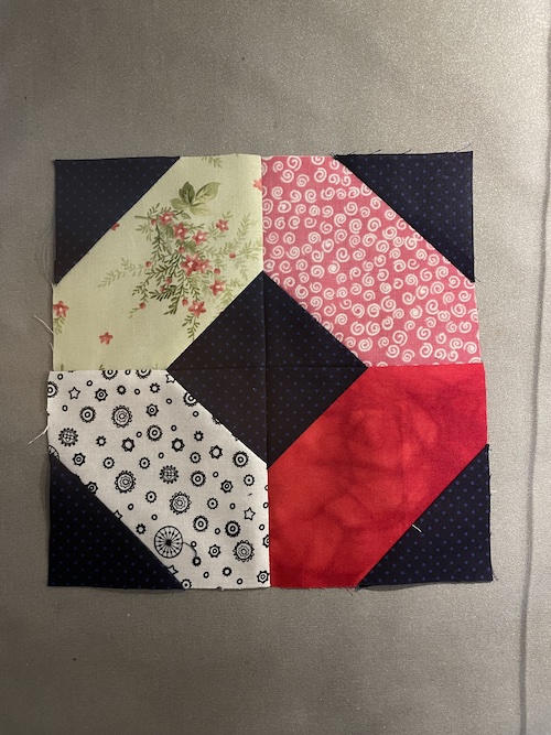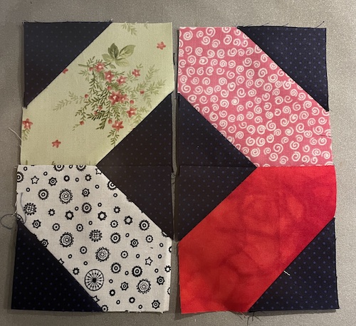 Forside » Gratis DIY og Inspiration » Patchworktæpper med danske bynavne 🇩🇰 » Restetæpper opdelt i de figure de er syet i » Restetæpper syet af 3 figurer » Diagonale firkanter bliver til Langeskov tæppet. Gratis DIY