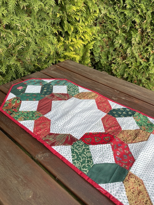 Og her som løber, syet af alle de flotte julestoffer der var i restekassen.
