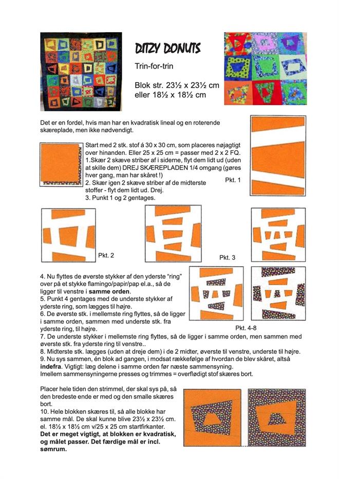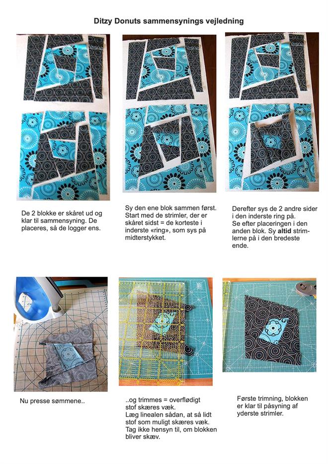 Forside » Gratis DIY og Inspiration » Sy med stofrester - mange muligheder for restetæpper mm » Ditzy-Donuts mønster - gratis trin for trin DIY