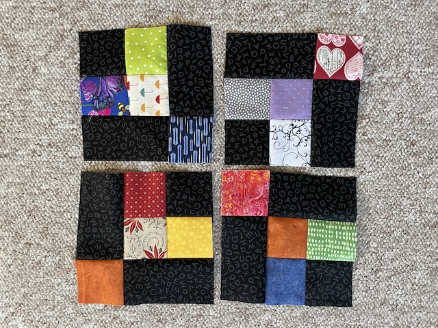 Forside » Gratis DIY og Inspiration » Patchworktæpper med danske bynavne 🇩🇰 » Restetæpper opdelt i de figure de er syet i » Restetæpper syet af 6 cm strimler » Enkelt blokke giver Dianalund restetæppe
