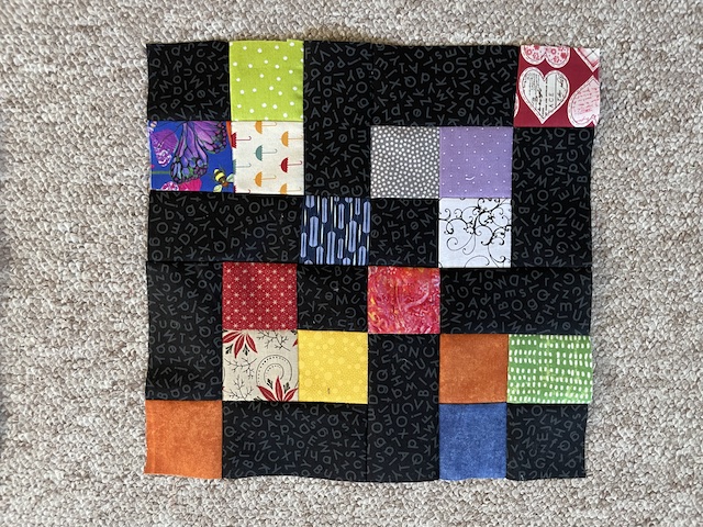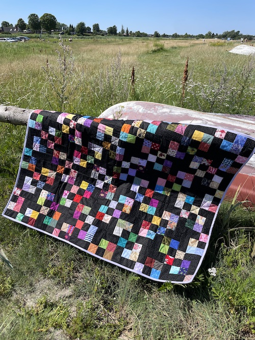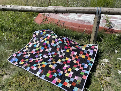 Sort bundstof og en masse firkanter kan bare noget i dette smukke restetæppe.