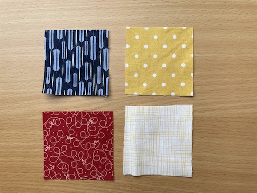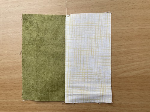 Samt 4 dele der hver består af 2 stk på 6 x 10.5 cm, en i bund stoffet og en i rester farve.
