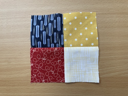 De 4 hjørne blokke består her af 2 firkanter på 6 x 6 cm.