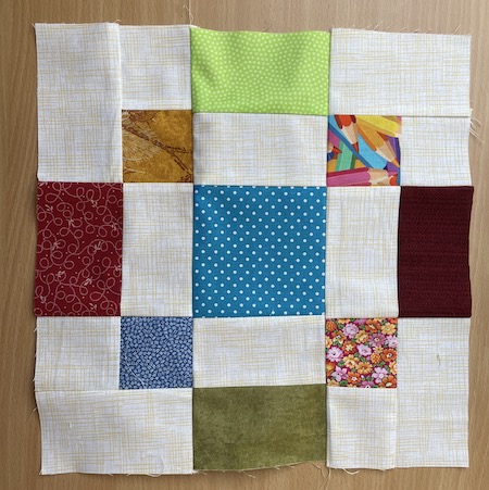 De 4 hjørne blokke består her af firkanter på 6 x 6 cm.