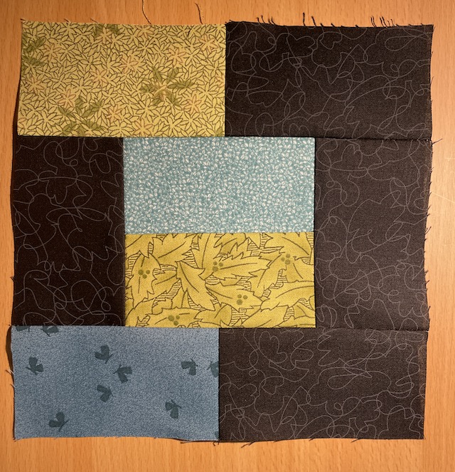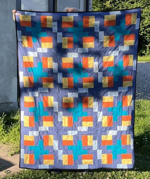 Nu er 1. blok færdig og du syr nu nogle flere til slumretæppet har den ønsket størrelse.