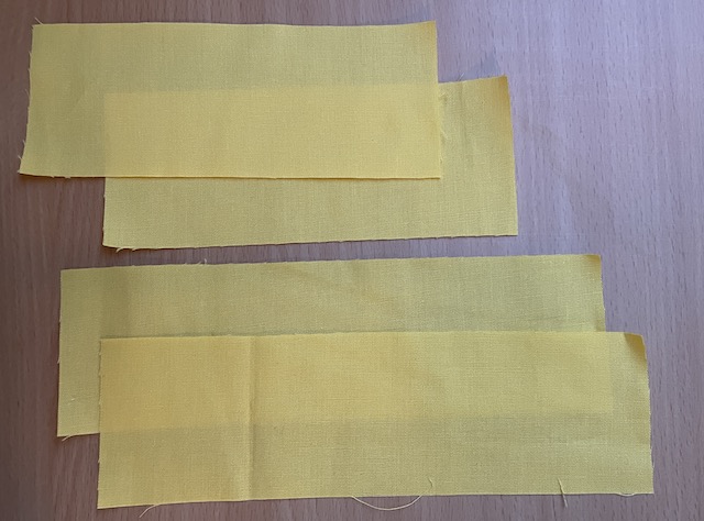 Derefter syr jeg dem sammen 2 og 2 og igen drejer dem en 1/2 omgang og syr dem sammen igen 2 og 2.