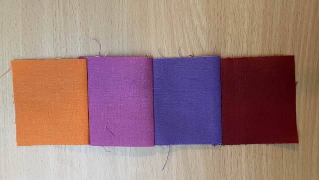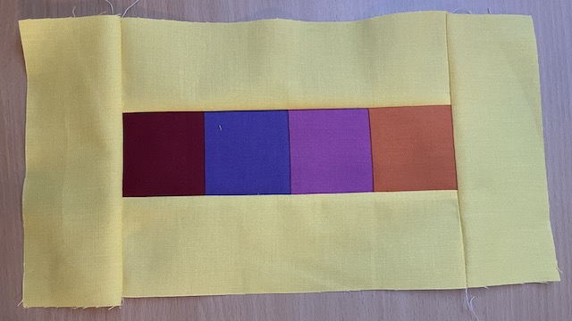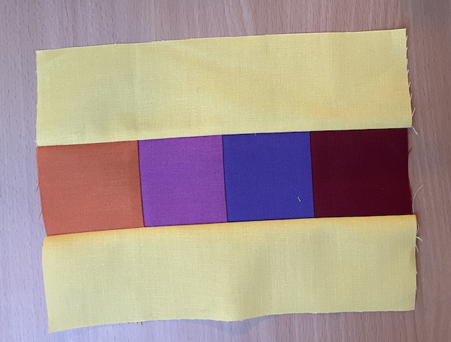Start med at sy de 4 små firkanter sammen på en række som på billede.