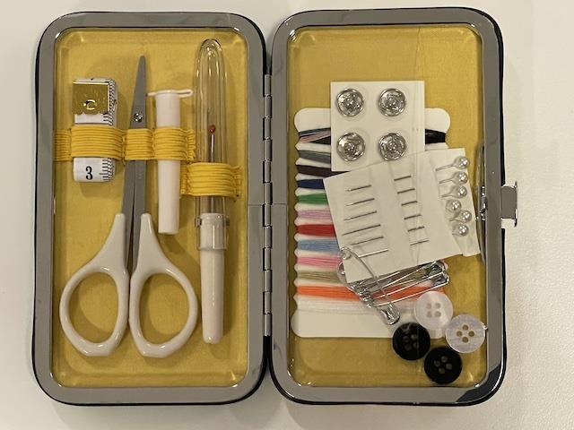 Super sødt fast etui hvor du har alt til at klare en sy nødsituation på ferie, i sommerhuset, i campingvognen eller der hvor du lige mangler en "nål og tråd".