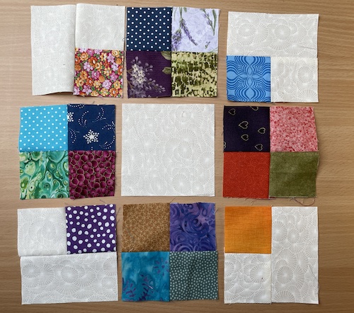 Forside » Gratis DIY og Inspiration » Patchworktæpper med danske bynavne 🇩🇰 » Restetæpper opdelt i de figure de er syet i » Restetæpper syet af 3 figurer » Firkanter, firkanter og atter firkanter giver Tommerup reste tæppe