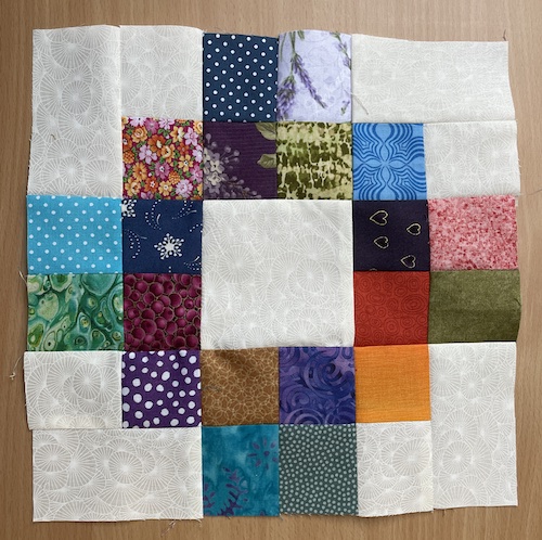 I mit Tommerup restetæppe er der brugt  4 x 6 blokke.