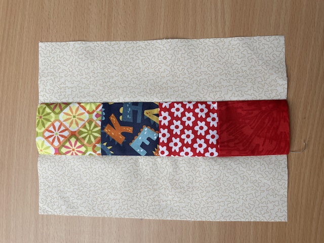 Sy nu på hver side en strimmel lyst på 6 x 19,5 cm