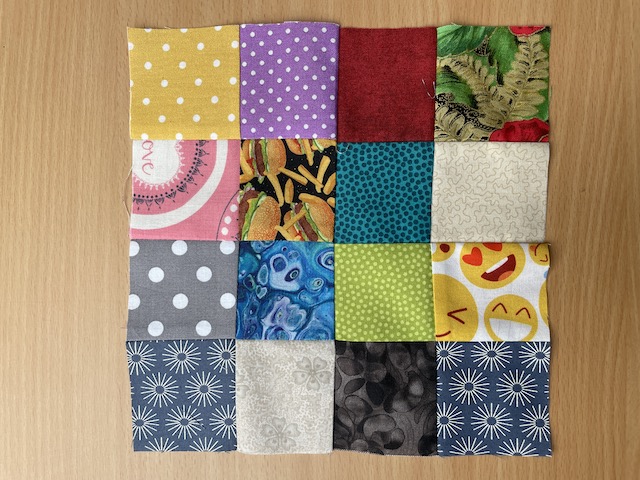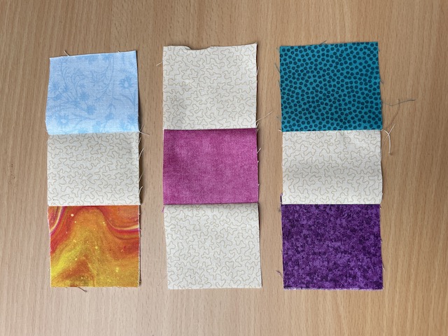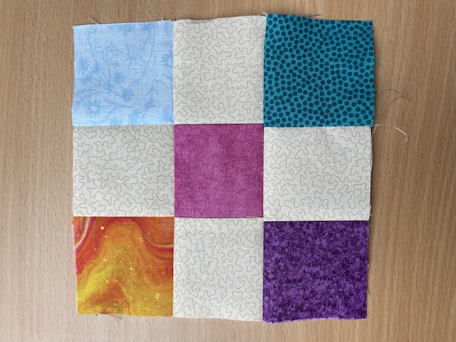 Forside » Gratis DIY og Inspiration » Patchworktæpper med danske bynavne 🇩🇰 » Restetæpper opdelt i de figure de er syet i » Restetæpper syet af 6 cm strimler » Firkanter i 3 forskellige blokke til Thisted tæppet. Gratis DIY