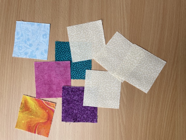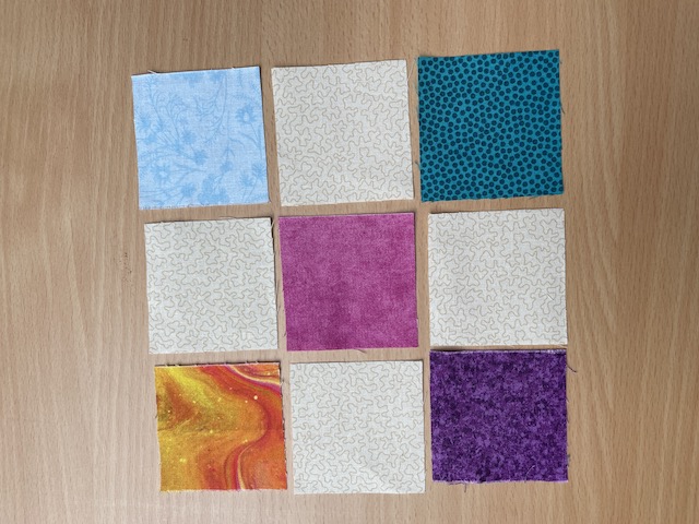 Firkanter i 3 forskellige blokke til Thisted tæppet.