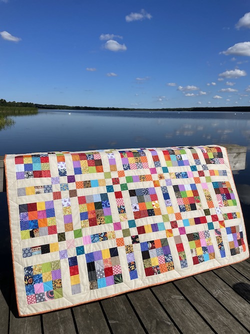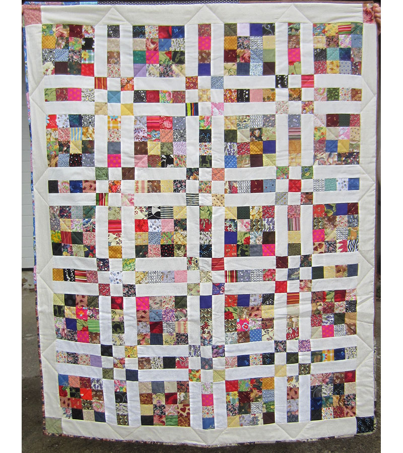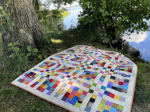Dette meget flotte restetæppe består næsten kun af små firkanter.