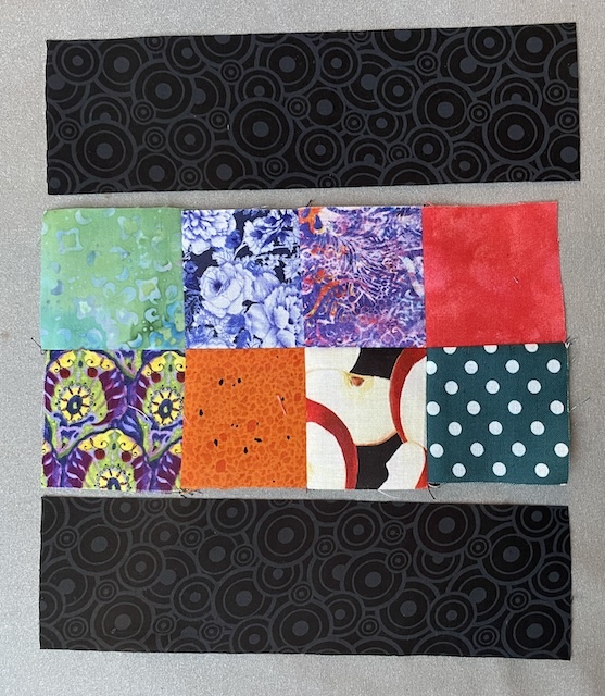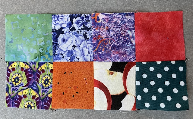 Start med at sy de 8 reste firkanter sammen 2 og 2.