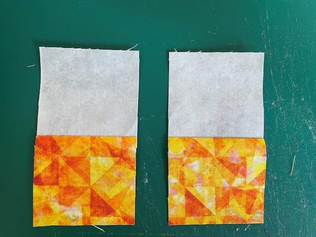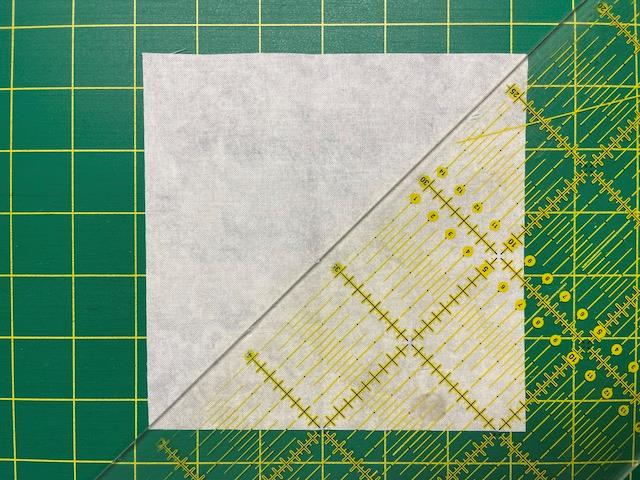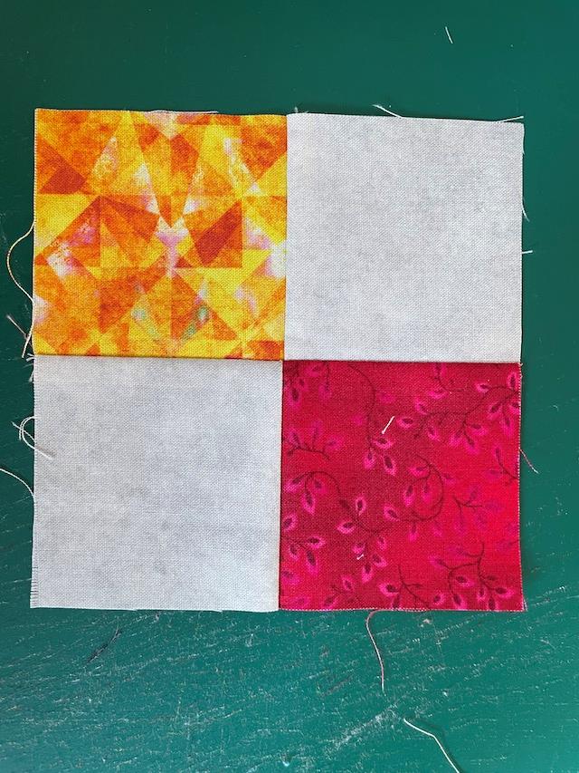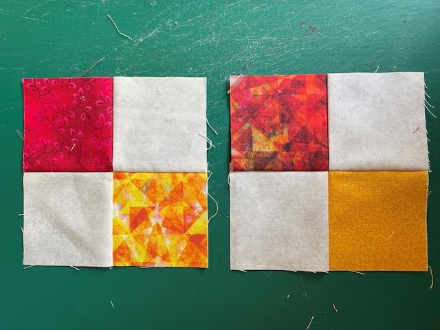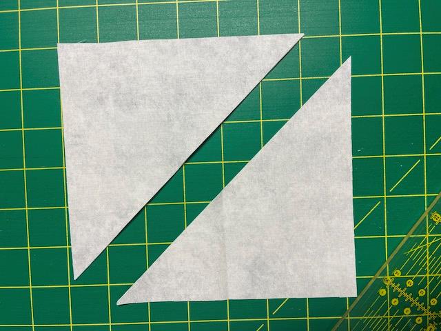 Alle trekanterne er skåret ud af 1 firkant på 15 x 15 cm og delt diagonalt.