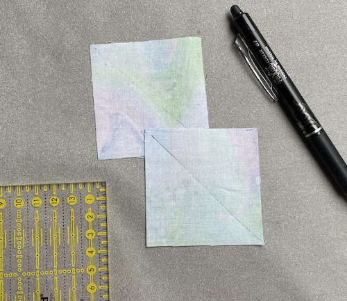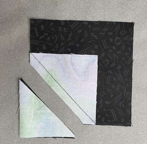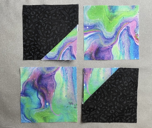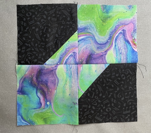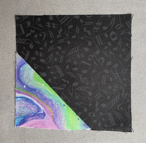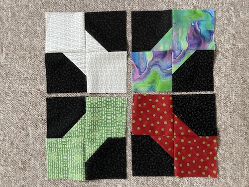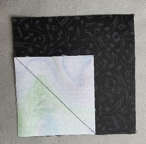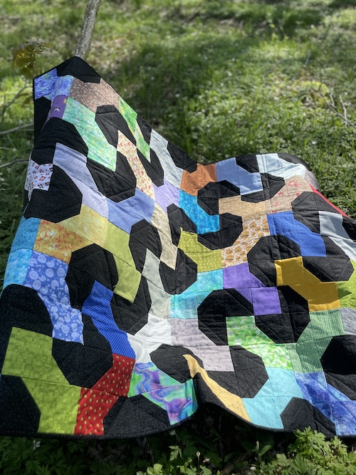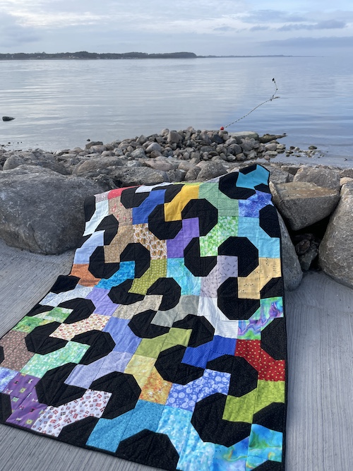 Har quiltet diagonalt med en sort quiltetråd igennem alle de sorte firkanter.