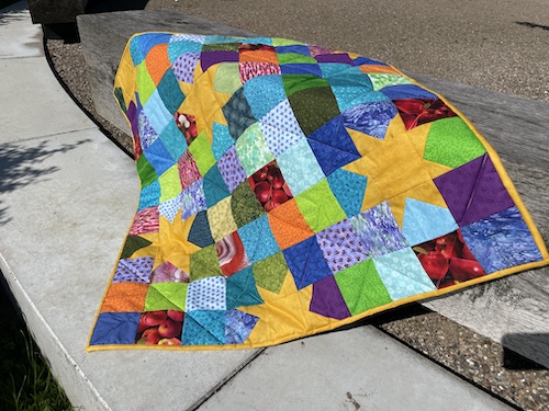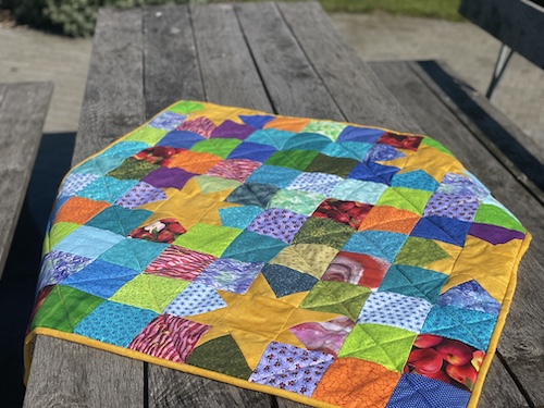 Forside » Gratis DIY og Inspiration » Patchworktæpper med danske bynavne 🇩🇰 » Firkanter og stjerner i smukt Låsby babytæppe