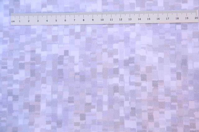 Smukt lys grå patchworkstof med uens firkanter blandet sammen i flere nuancer.