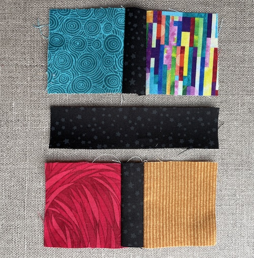 I restefarven 4 firkanter på hver 6 x 6 cm.