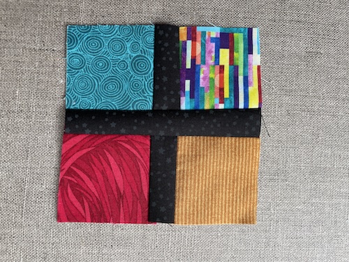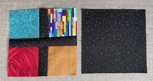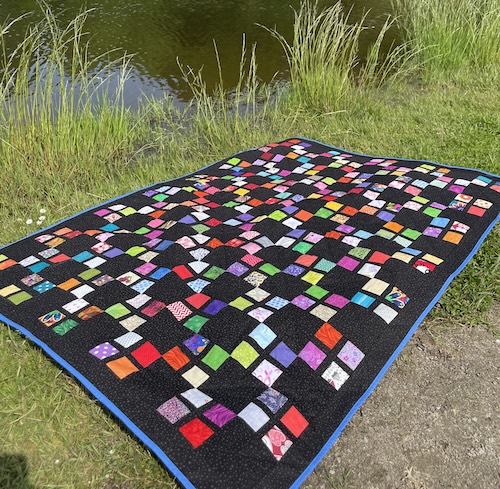Forside » Gratis DIY og Inspiration » Patchworktæpper med danske bynavne 🇩🇰 » Patchwork tæpper opdelt efter landsdele » Sjælland - bytæpper med Sjællandske bynavne » Firkanter på sort bund giver flot Fredensborg tæppe