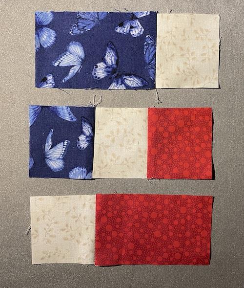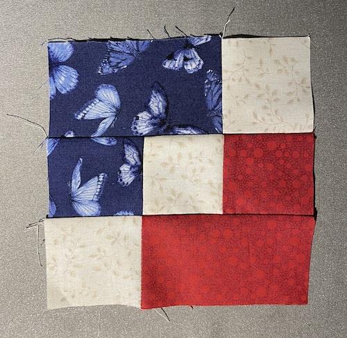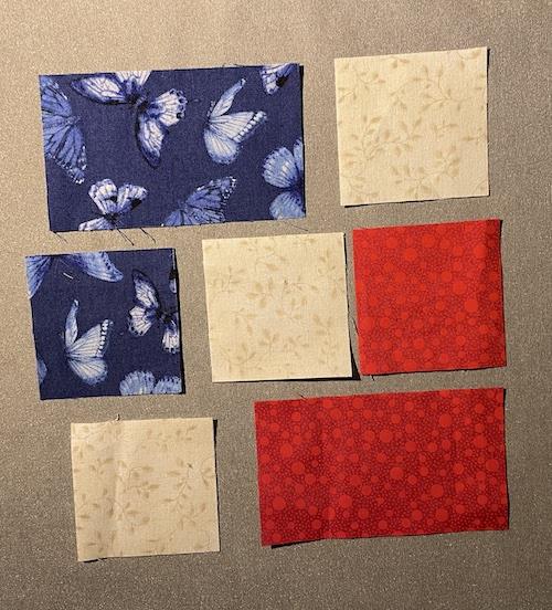 Jeg har lagt dem op så det danner et firkant "i midten" et asymmetrisk mønster på dette restetæppe.