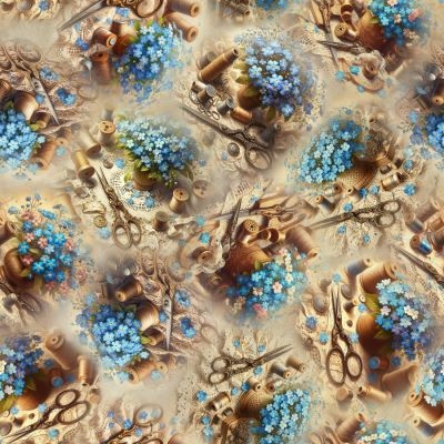 Forget me not patchworkstof - Sytilbehør, er et meget smukt 100% bomuld patchwork stof der er 110 cm bred. Denne meget flotte serie af patchwork stof har flot lys bundfarve med masser af små blå forglem mig ej, sakse, sytråd mm
