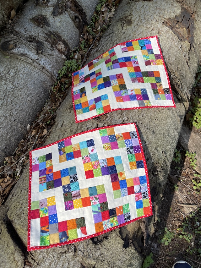 Forside » Gratis DIY og Inspiration » Patchworktæpper med danske bynavne 🇩🇰 » Dækkeservietter mm i stofrester efter bynavne tæpper » Fredericia mønster her som 2 dækkeservietter