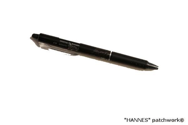 Denne smarte Sorte Frixion Quiltepen kan du bruge når du skal tegne feks et quiltemønster på dit patchwork stof.