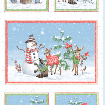 Frost & Fable patchworkstof med 4+1 motiver med søde dyr i flotte afstemte farver.