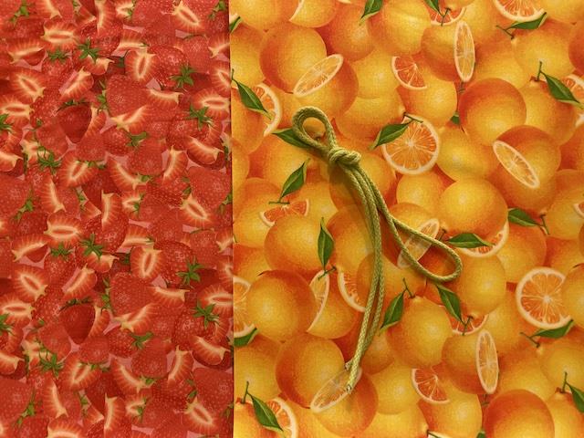 Materialer til en frugtpose - sykit med Appelsin og jordbær - Sy selv