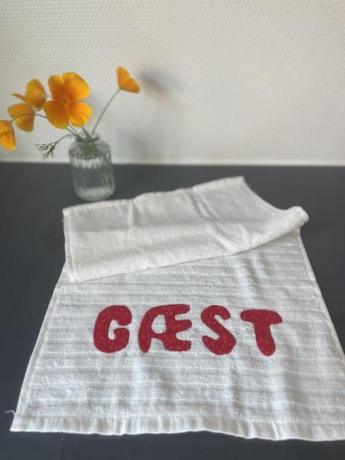 De gæste håndklæder er købt i Ikea, men det kan jo også være gamle håndklæder,
