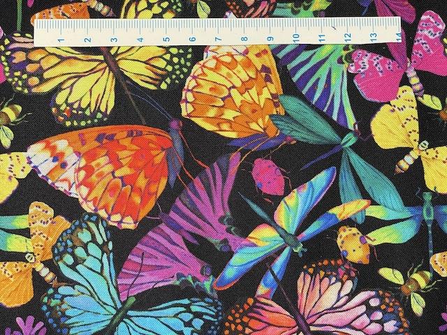 og har et flot sort bundfarve og masser af farverige sommerfugle på.