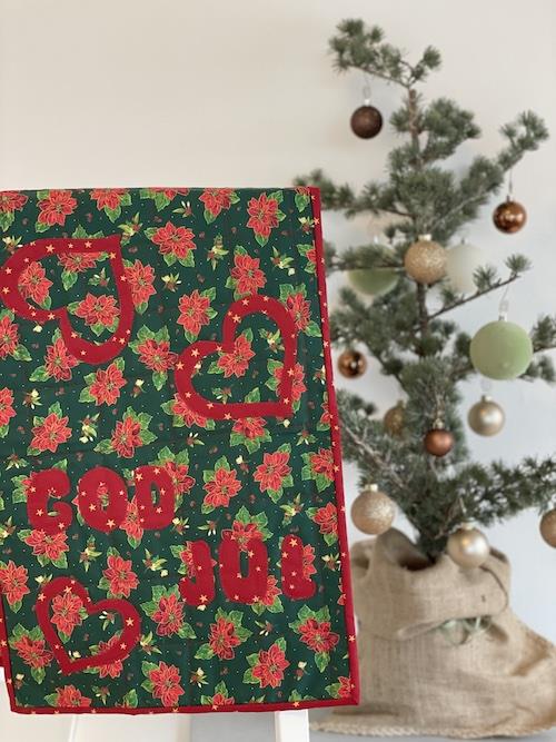 Denne smukke løber / dobbelt dækkeserviet, med hjerter og teksten "God jul".