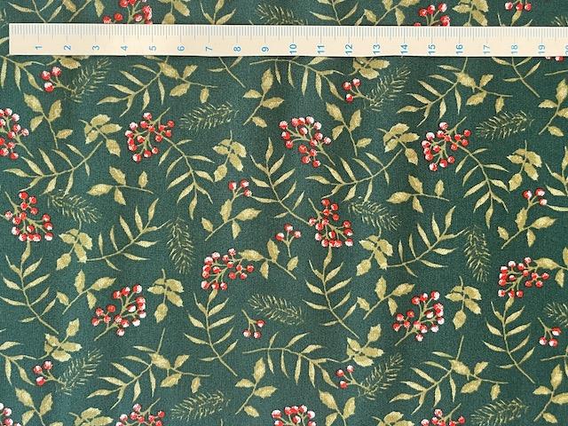 Er et flot grøn bred bomuldsstof med flotte grønne grene med røde bær