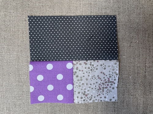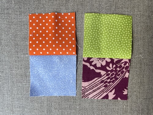 Hver af disse blokke består af 2 farvet firkanter på hver 6 x 6 cm og et rektangel på 6 x 10.5 cm i bundfarven.