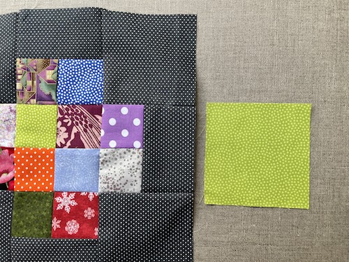Og de grønne firkanter på 10,5 x 10,5 cm skal "indimellem"