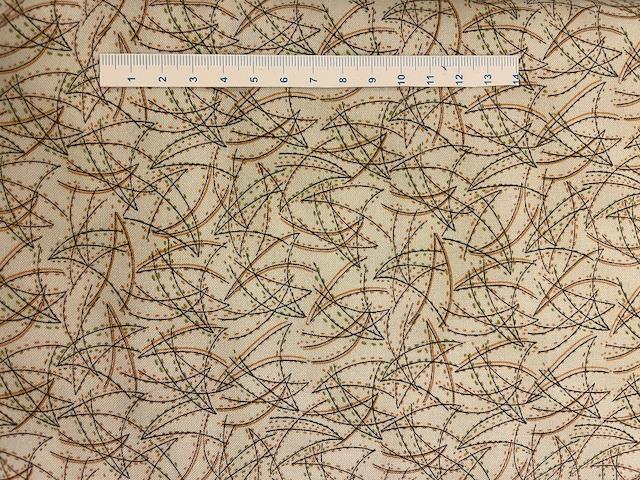Dette meget flotte beige grønne patchworkstof er 110 cm bred.