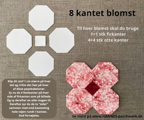 Forside » Gratis DIY og Inspiration » Gratis vejledninger - trin for trin. » Små sjove projekter også for nybegynder » Håndsyet blomster med 8 kanter om 4 kant.