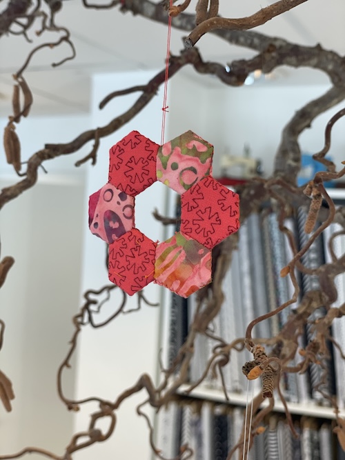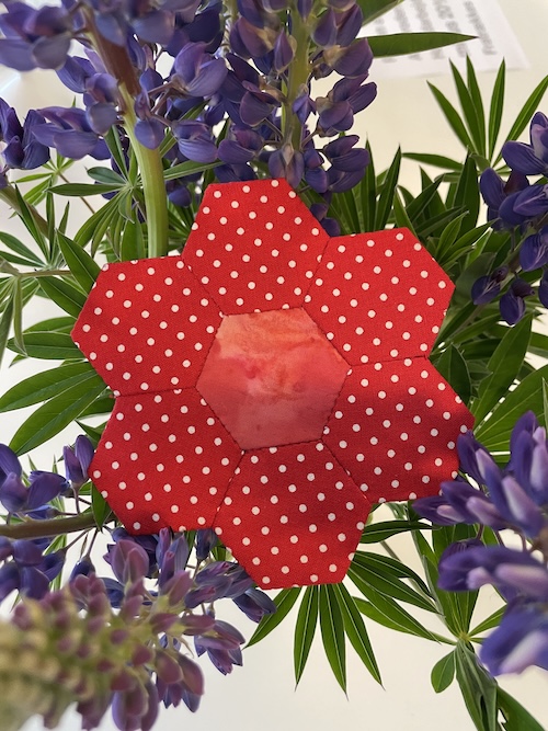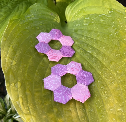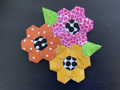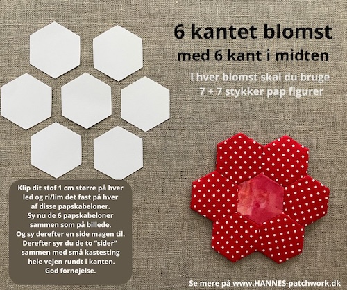 Forside » Gratis DIY og Inspiration » Nybegynder patchwork » Håndsyet blomster - nemme at sy. » Håndsyet blomster med 6 kanter om en 6 kant. Håndsyet blomster med 6 kanter om en 6 kant. Vi har nemlig lavet et gratis mønster og vejledning til de fineste håndsyede patchwork-blomster, Du kan bruge blomsterne som pynt i vinduer, på tasker, som bordpynt eller måske som en sød værtindegave. Det eneste du skal bruge er: ✂️ Små stykker patchworkstof (rester er perfekte!) 🧵 Nåle, tråd og lidt pap 🪡 Og lysten til at fordybe dig i noget hyggeligt Disse flotte blomster består at 2 x 7 papskabeloner i seks kanter da der er en sekskant i midten. Kan også købes færdig udstandset her Her det helt lige meget hvilken størrelse dine sekskanter har - bare de er lige store. Beklæd dine papskabeloner med stof som du enten syr eller rier fast om pappet. Husk ca en cm sømrum på alle sider. Har du lyst til at komme en tynd volumenvlies imellem pap og stof er det også en mulighed, så bliver blomster "lidt mere fyldig". Dette vat skal være helt samme størrelse som dine papskabeloner. Sy derefter to side af blomsten og sy dem sammen tilsidst med små usynlige sting. Tag derefter evt ritråden ud - men pappet skal jo blive i da det er det som holder faconen. Her er de syet i mini størrelse med sidemål på 2 cm. Og uden midter 6 kanten så de "bare" er syet samme som en "ring" Perfekt til at hænge i et vindue, på en troldegren eller i loftet. Og til at give som en smuk værtinde gave eller i steden for en "rigtig" blomst. Blomster øreringeEller som her hvor de er brugt som øreringe ?? Blomster buketHer har jeg syet 3 blomster og et par blade - så ser det ud af lidt mere.Så ja der er syet to ens sider inden de er syet sammen med små sting. Husk at spejlvende den ene side. Pappet bliver i da det er jo er det som holder faconen Sommer dug med blomster Du kan også som her sy en masse blomster og sætte dem samme til en blomster krans. |