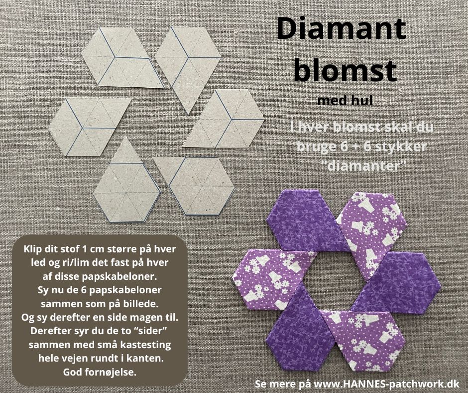 Forside » Gratis DIY og Inspiration » Gratis vejledninger - trin for trin. » Juveler/diamanter papskabeloner til mange syet ting » Håndsyet blomster med 6 "diamanter" med hul i Håndsyet blomster med 6 "diamanter" med hul i. Vi har nemlig lavet et gratis mønster og vejledning til de fineste håndsyede patchwork-blomster, Du kan bruge blomsterne som pynt i vinduer, på tasker, som bordpynt eller måske som en sød værtindegave. Det eneste du skal bruge er: ✂️ Små stykker patchworkstof (rester er perfekte!)🧵 Nåle, tråd og lidt pap 🪡 Og lysten til at fordybe dig i noget hyggeligt Disse flotte blomster består at 2 x 6 papskabeloner i "Diamanter" da der samt sammen, danner en "usynlig" sek kant i midten af denne smukke blomst. Her det helt lige meget hvilken størrelse dine diamanter har - bare de er lige store. Beklæd dine papskabeloner med stof som du enten syr eller rier fast om pappet. Husk ca en cm sømrum på alle sider. Har du lyst til at komme en tynd volumenvlies imellem pap og stof er det også en mulighed, så bliver blomster "lidt mere fyldig". Dette vat skal være helt samme størrelse som dine papskabeloner. Sy derefter to side af blomsten og sy dem sammen tilsidst med små usynlige sting. Tag derefter evt ritråden ud - men pappet skal jo blive i da det er det som holder faconen. ![]() Du kan jo lave dem i den størrelse du har dine papskabeloner i. Perfekt til at hænge i et vindue eller i loftet. Og til at give som en smuk værtinde gave eller i steden for en "rigtig" blomst. Skulle du have lyst til at sy flere blomster - er der også denne mulighed - det er 100% samme skabelon, som bare er samlet på en anden måde. Er det ikke bare sjovt at se hvor forskelllige de er og bliver. Gratis DIY til denne blomster finder du her Har du lyst til at sy andre blomster finder du nogle her: Blomster af 6 kanter Blomster af 8 kanter Blomster af "Lucy Boston" Rigtig god fornøjelse med at sy disse blomster af disse "Diamanter" |