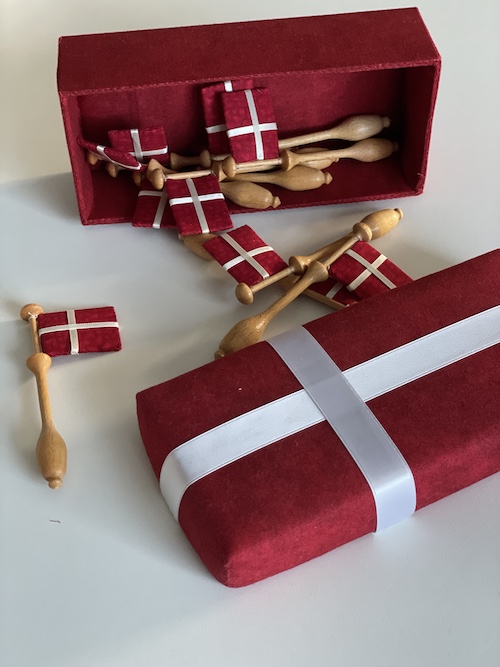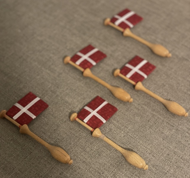 🇩🇰 Jeg er total vild med disse søde danske håndsyet flag der er syet på en træ kniple pind.🇩🇰