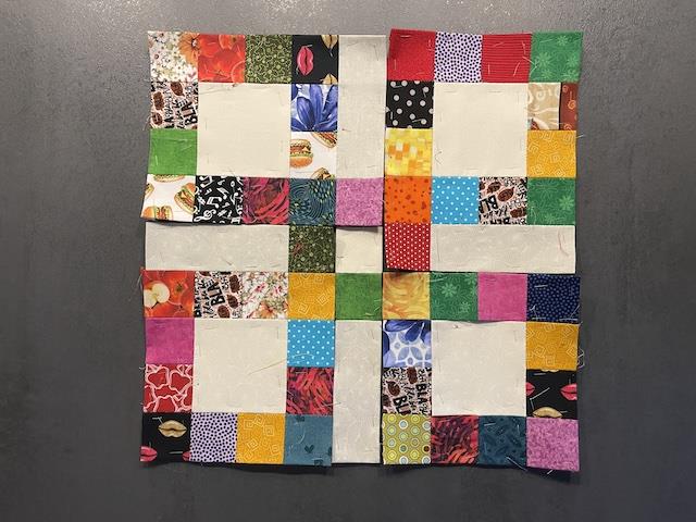 Forside » Gratis DIY og Inspiration » Projekter - patchwork for alle » Leg med dine stofrester - gratis DIY 2023 » Håndsyning af "Leg med dine stofrester"