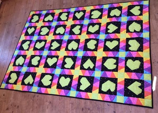 Mønster til HANNES hjertetæppe som måler 135 x 190 cm Dette er et Pedari patchworkmønster, som indeholder papskabeloner, lige klar til at klippe ud.