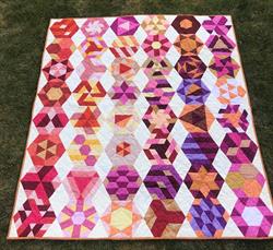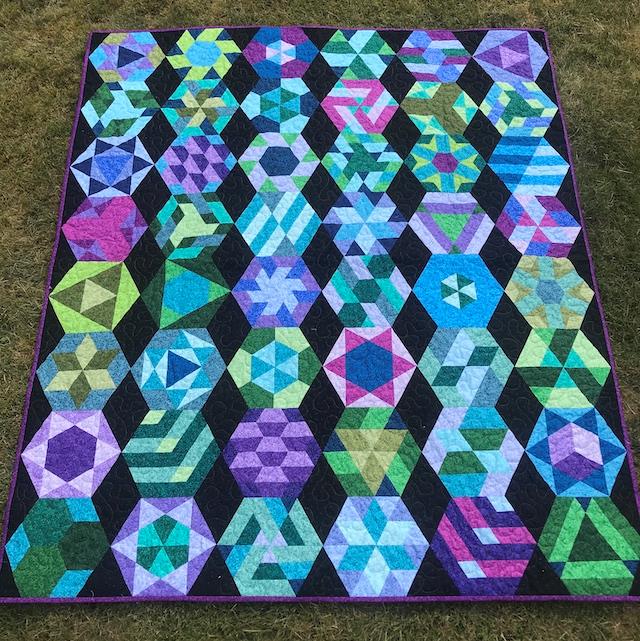 Sjovt at sy da der er mange forskellige blokke i hele tæppet ( 2 x 24 forskellige sekskanter).