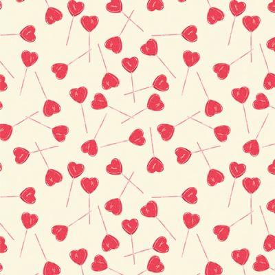 Dette flotte meget råhvide patchwork stof har små røde hjerter på "pind"